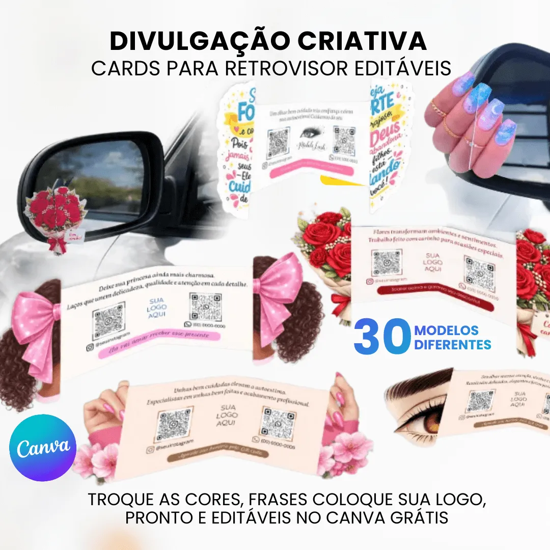 ✔️ 30 modelos de cards para retrovisor (prontos para edição no Canva)