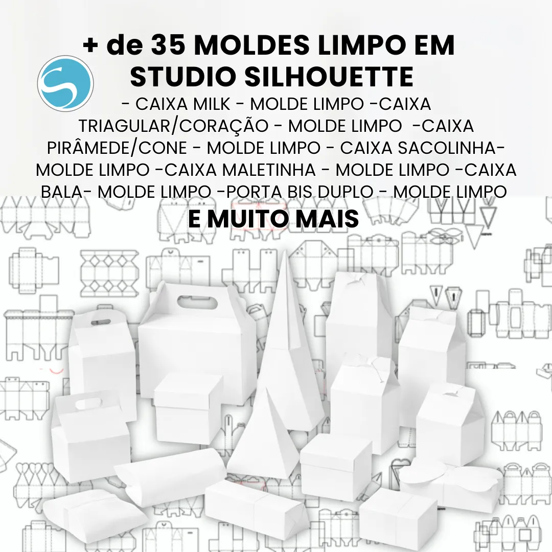 ✔️ +35 moldes limpos em Studio Silhouette ✔️ Caixa Milk✔️ Caixa Triangular / Coração✔️ Caixa Pirâmide / Cone